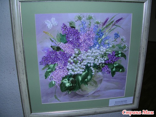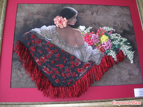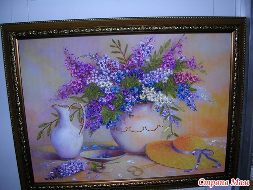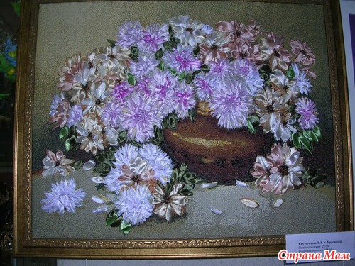 А это гобелен вышитый лентами красота невероятная уже попадалось несколько работ гобелен расшитый бисером, а вот ленты в первый раз вижу, мне очень нравится идея, может и решусь когда нибудь повторить.