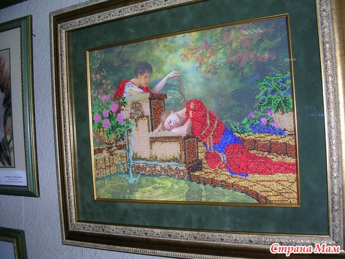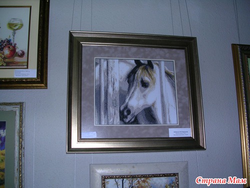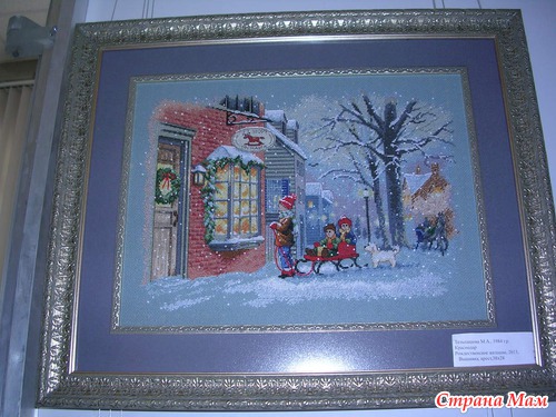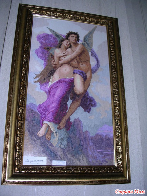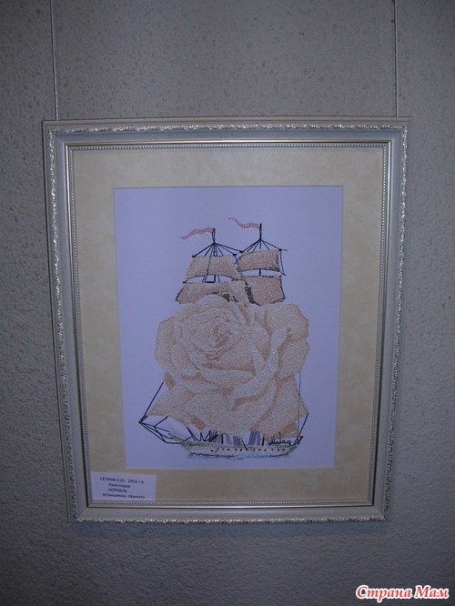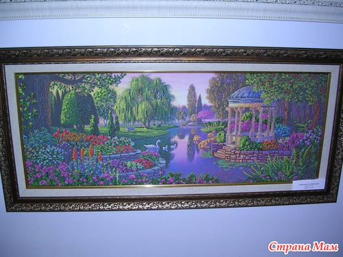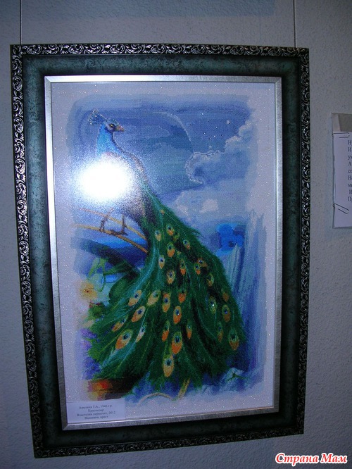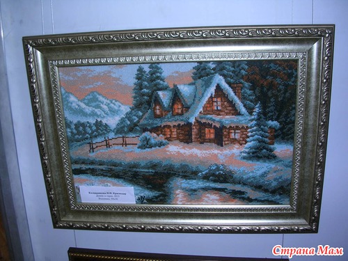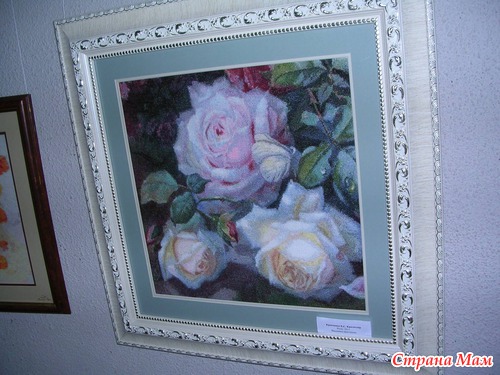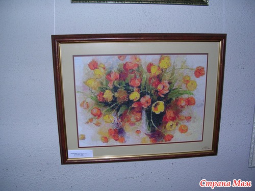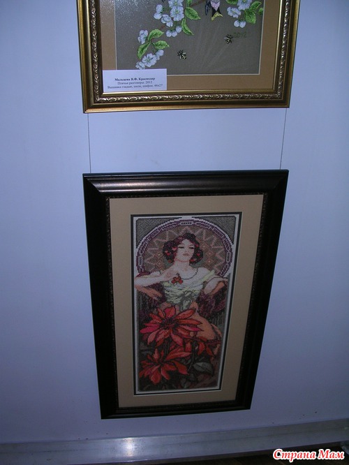 Эта работа от ГК является изюминкой выставка, её автор вышивала 1год 2мес., схему она нашла в интернете и очень хочет узнать имя автора схемы, даже оставила свой номер телефона если кто из зрителей знает что бы ей сообщили. Называется картина "Любовное письмо".