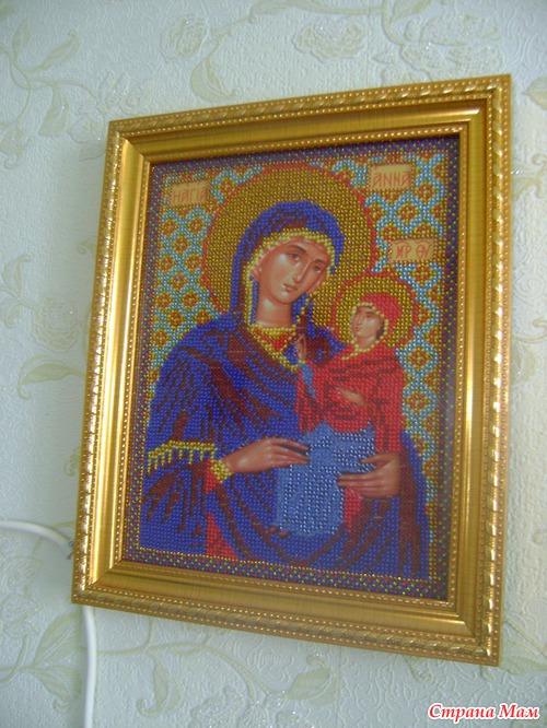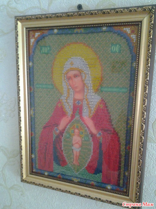 Когда узнала о второй беременности очень захотела вышить себе икону Помошница в родах, долго искала нигде не могла найти - обошла все киоски с вышивкой все магазины по рукоделию и кругом - НЕТ)))) и когда решила заказать в интернет - магазине ( нашла только в одном и то по предоплате ), мама пришла с рынка и принесла то что я хотела. Отшилась очень быстро
