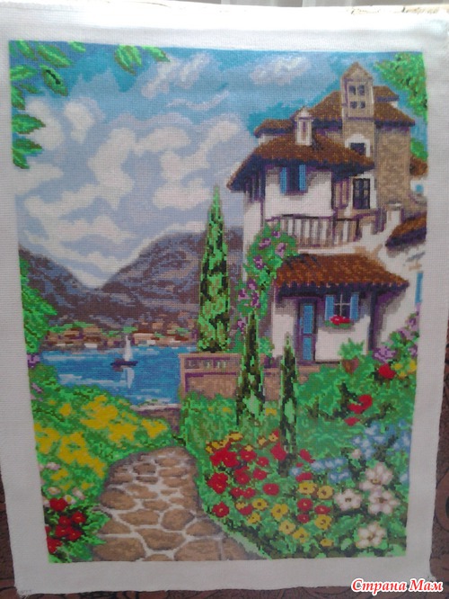 И мой долгострой, правда пока неоформленый. Картина называется Райский уголок у воды, схема взята из журнала Вышиванка, не помню за какой год, размеры готовой работы 39*29 см, 240*190 крестиков, канва Аида 18, нитки шерстяные - самоподбор. Вышивалась с большими перерывами но в итоге дошила. За качество фото прошу извинить