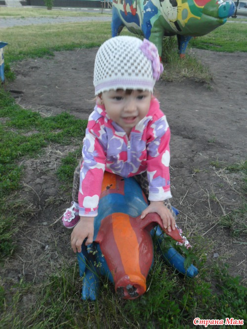 Болтает воснавном на своем языке, из слов мама, папа, баба, дядя, тетя, дай, ну и животных там всяких озвучивает)На детской площадке обожает кататься с горки, играть чужими игрухами(если дают). Вообщем растем потихоньку. А вот и наша кисонька смотрите...