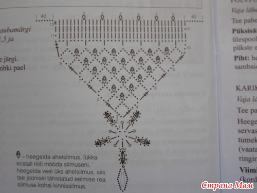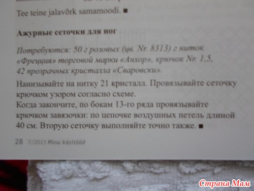 А вот одна сеточка для ножки готовая ( но не расправленная)-посмотрите. Цепочку (которой-завязывать ножку) провязала нить в четыре сложения. И не сорок петель (как на схеме), а 60.