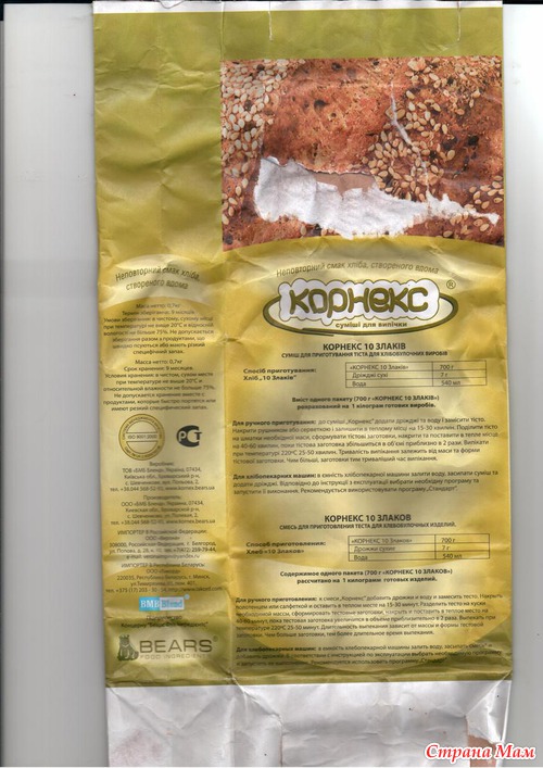 На этот пакет и надо то 7 гр сухих дрожжей и 540 мл воды, но я ещё добавила столовую ложку растительного масла!