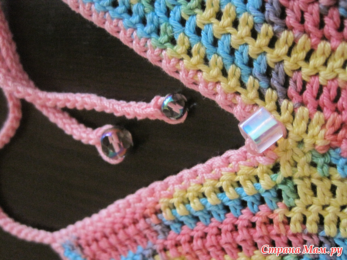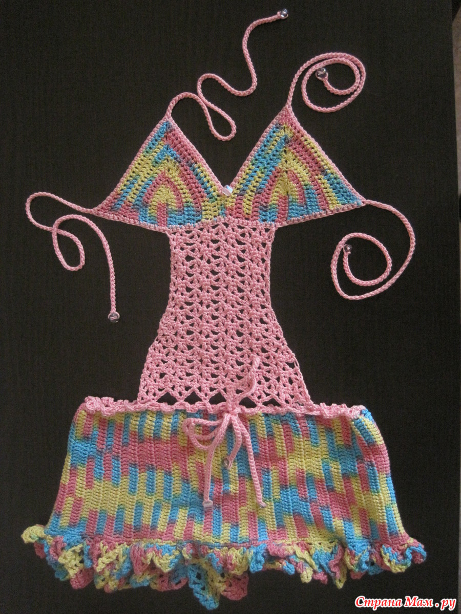 Вязала из коко принта и виты роуз, крючок №2, ушел 1 моточек принта и полмоточка розы, + стеклянные бусины (6шт) круглые на концы завязочек и бусины кубической формы между чашечками лифчика и на завязочке на поясе))))