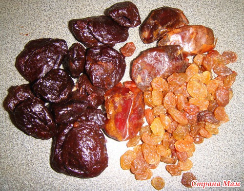 Промыть сухофрукты (изюм, курага, чернослив, финики, инжир - по желанию):