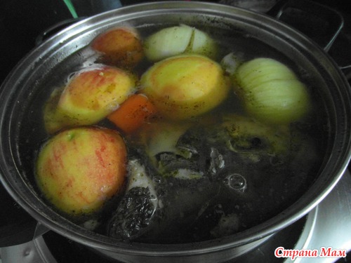 разделала в холодильник убрала... а голову, плавники, хвост остались... на плавниках сплошной жир... Как раз жиденькое надо... сварю бульончик... мои рыбаки, последнее время, плохо уху едят... и тут я вспомнила как в Смаке в бульон яблоко клали... Ну и я попробую...