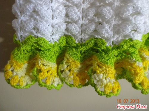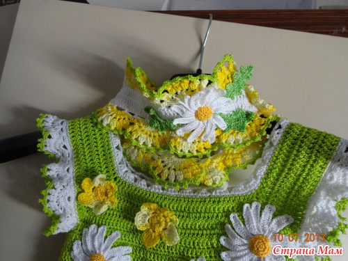Дело в том, что здесь другие ниточки, они по номерам и все у меня разные. Зеленые №12 в 2 сложения вязала крючком 1, 75 и желтые №8 в одну нить и тоже крючок №1,75, а белые №20 в 2 нити и крючок № !,5, а уже отделка все в одну нить и белых было немного 12 номера, для рукавчика, обвязка тоже зелёными в одну нить №12 а ромашки крючок №1 и в одну нить 20 номер ниточки, а лютики желтые так №8, потому что других не было. А вот вы пишите "Пехорка успешная" например, я даже не знаю как они выглядят. №8 нить потолще ириса, а 12 потоньше, но сестра говорит, что сайчас ирис другой, потому что она у меня нашла 20 летней давности. А номер 20, раньше был СНЕЖОК, похож немного.
