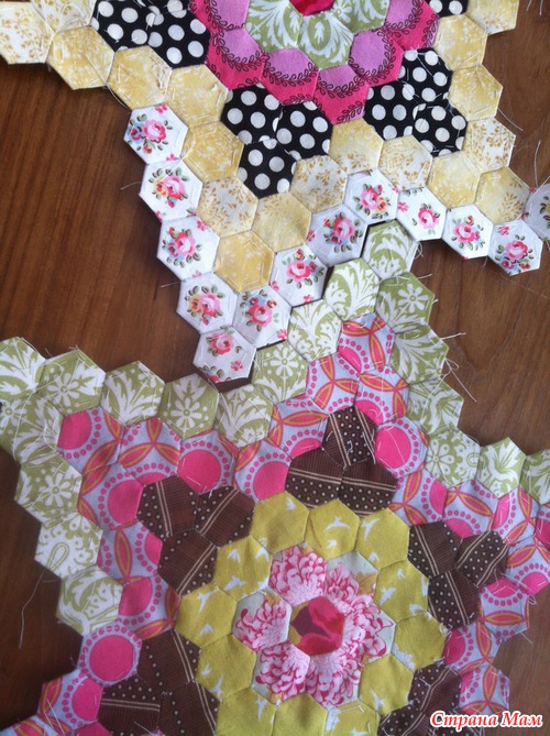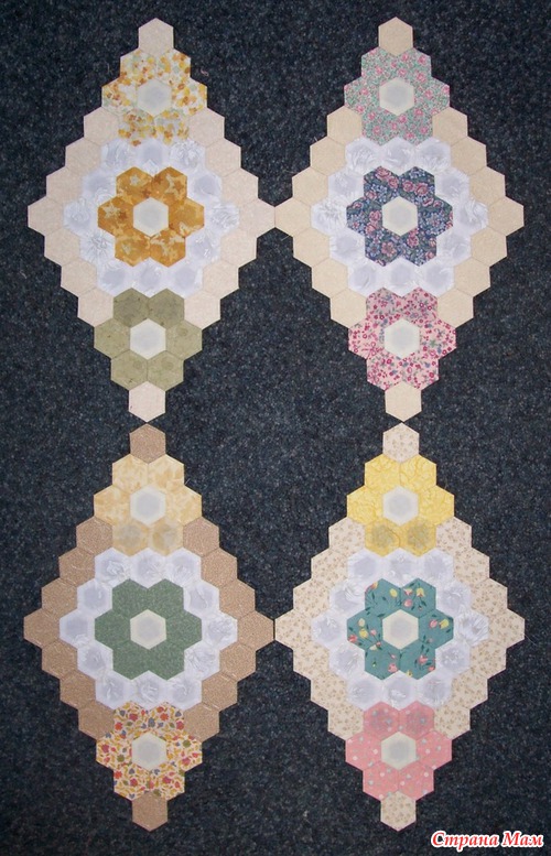 После того как все гексагоны соединены между собой, бумага вынимается, и вы получаете готовый верх для квилта. Стегать можно вручную или на машине.