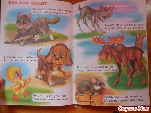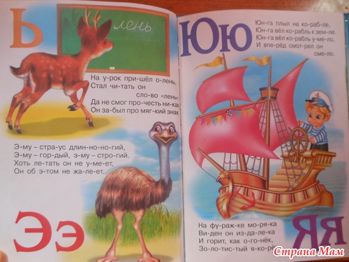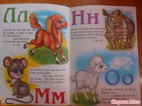 каждой букве соответствует коротенький стишок и рисунок. И просто стихи для начального чтения. А также 2 небольшие сказки в конце - "Дорога на мельницу" и "Угощение для медведя". Т. е. книга построена по принципу постепенного усложнения материала.