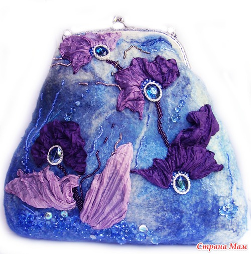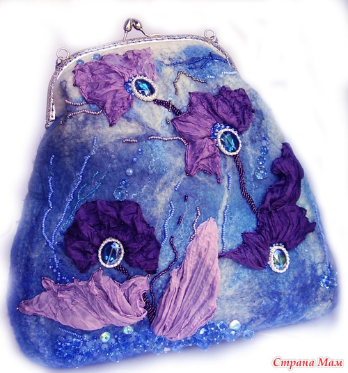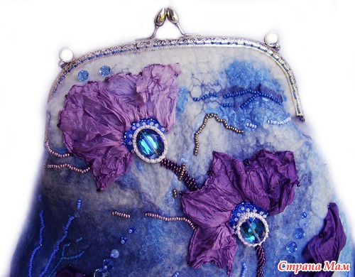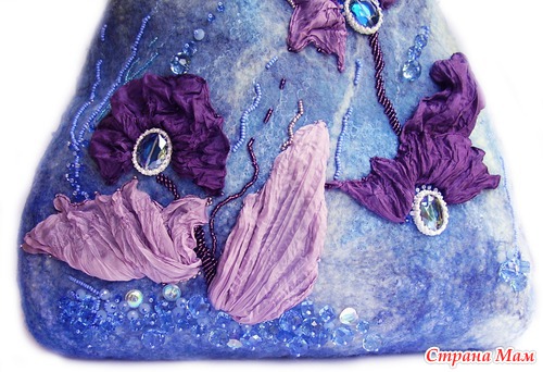 Это, пожалуй, самая "долгоиграющая" моя работа. Сумка получилась со своим определенным рисунком, и дополнительно декорировать ее было крайне сложно. Ркрор месяца я как лиса под тем деревом с вожделенным сыром, ходила вокруг заготовки, прикидывала различные варианты... Даже отчаялась придумать что-либо в какой-то определенный момент. А потом получилось все как-то само собой