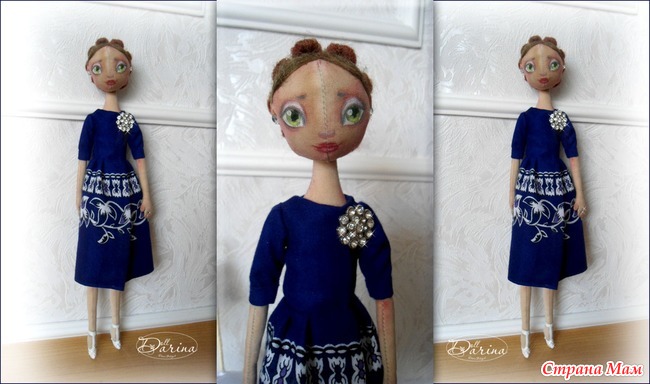 И напоследок моя последняя работа. Элегантная кукла в синем платье.
