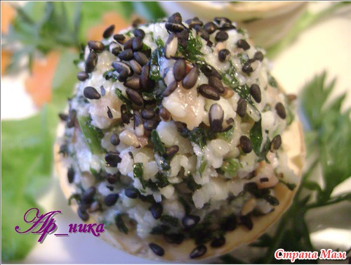 100 гр. ботвы моем, просушиваем, режем как можно мельче и обжариваем 3- 4 минут в 1 дес. ложке оливкового масла с добавлением сушеного орегано (1\2 коф. ложки), и маааленького зубчика чеснока. Не забываем помешивать. Добавляем 3 дес. ложки белого кунжута, продолжаем обжаривать до тех пор, пока кунжут не начнет "взрываться" (еще пару минут). Снимаем. Сбрызгиваем лимонным соком. Охлаждаем.