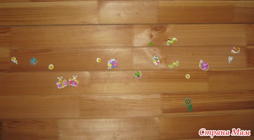 Наши любимые наклейки - книжки издательства Семи гномов. Затерты до дыр =) Накупила их на разные темы - и по заданию приклеивать предметы, и на сказочную тему - там например в репке всех героев нужно правильно приклеить и прочее - прочее. За наклейки ее усадить проще простого. Или дать лист и пустить гулять - у прабабушки вся комната в кошках...