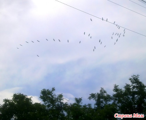 Сперва они кружили по кругу... затем плавно выстроились в клин и полетели перед нами!..