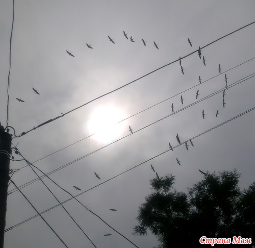 Ехали мы из магазина с Милым и прямо над нами огромная стая птиц... Думали - гадали кто же это может быть?