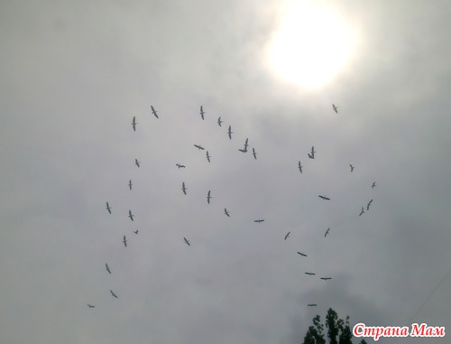Ехали мы из магазина с Милым и прямо над нами огромная стая птиц... Думали - гадали кто же это может быть?