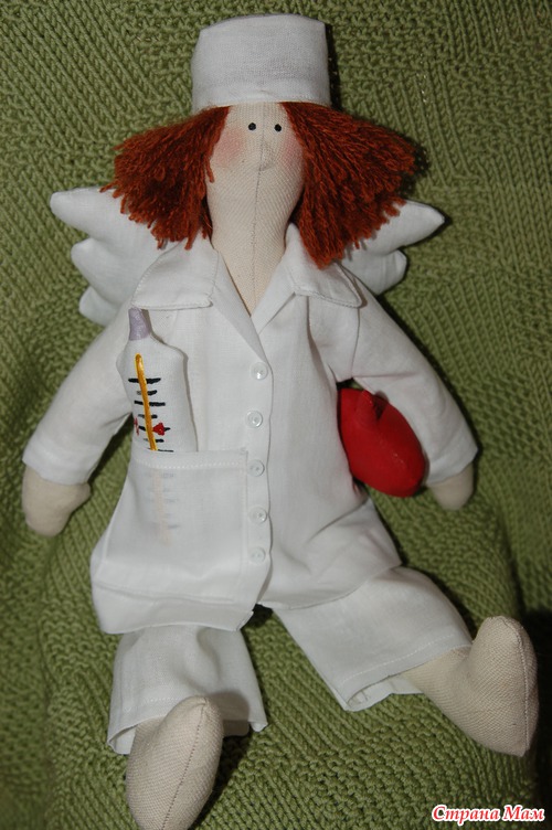 Моя двоюродная сестра медработник. Я подглядела у нее в хотелках тильду-медработника. Сказала ей, что обязательно сошью такую для нее. И вот, наконец, у меня дошли руки.