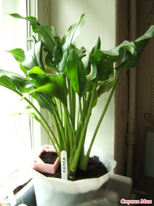 Калла стала желтеть, почему то с маленьких листьев, а не со старых. Это она так к "покою" готовится?