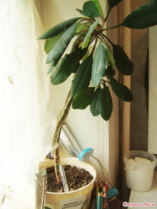 А его я оторвала в обувном магазине. Это должно быть деревце. В магазине растение было примерно метр, не больше. Листьев мало, много осыпается и почему то в таких жёлтых точках. Может кто знает что это за растение и чем больно?