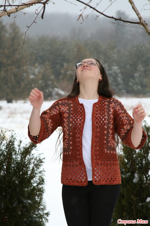 Ну а этот жакет связала по всеми известной схеме. Пряжа - всяческие остатки, купленные на распродаже.