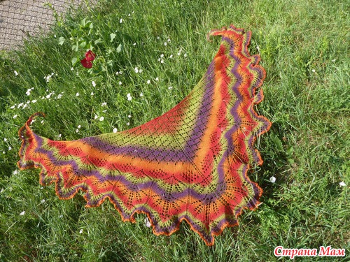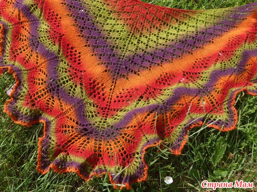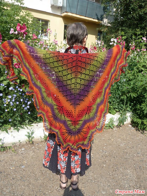 Давно уже ничего не выкладывала, да и вязалочки мелкие были, шапочки-панамки разные, и вот наткнулась на постик в СМ https://www.stranamam.ru/post/5851631/#com40442374 там эта же шаль только в цвете радуга, очень красивая