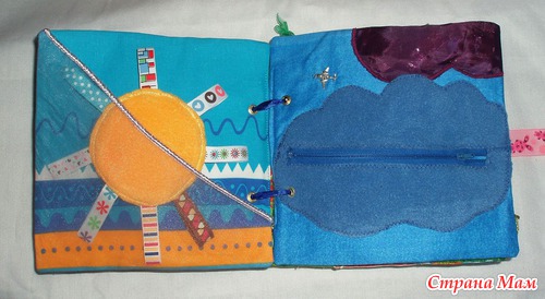 Страничка Тучка Верхняя тучка из плащевки, набита шуршаим блестящим целлофаном (просвечивает), вторая тучка из флиса, мягкая на молнии, нутри прячется дождик (разные тесьмы)