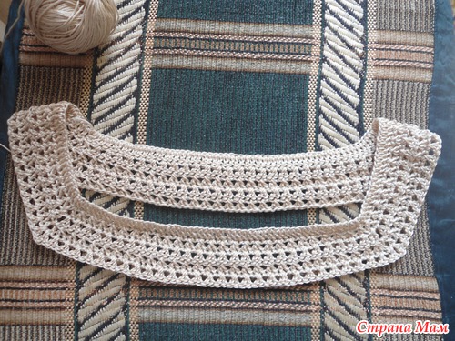Как мы обсуждали уже, верх кокетки связан скрещёнными столбиками, я уже немного начала, не удержалась. Из этих ниточек буду вязать крючком 3