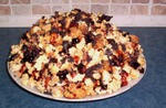 Теперь насыпаем следующий слой крошки. И снова промазываем сгущёнкой, вареньем и посыпаем маком. Таким образом собираем весь муравейник.