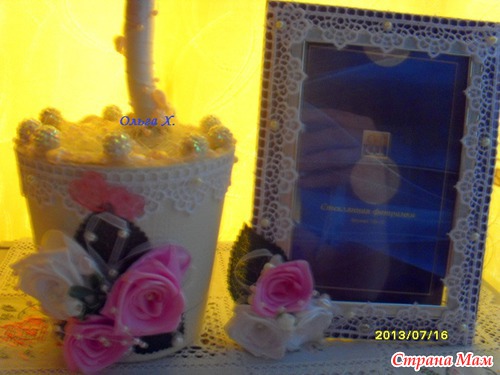 Необычное для свадьбы сиренево-розовое деревце захотела моя знакомая в подарок на свадьбу своей сестре. В пару к нему захотелось сделать и рамочку.