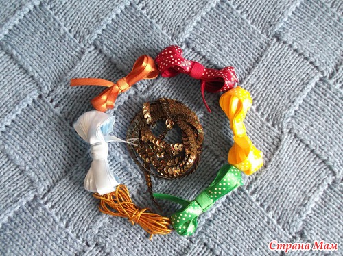 Ленточки, золотой шнурочек и пайетки на ниточке