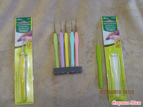 Так вот, я их все-таки купила!!! И уже в руках подержала, и уже повязала, и я счастлива! Лично мне они очень понравились, ручка просто супер удобная, сталь классная, скользит хорошо, мне очень удобно с ними. Я безумно рада, что не зря потрачены немаленькие деньги, что валятся не будут, а я буду ими работать с удовольствием. Только предупреждаю, что я делюсь лично своим мнением, и то что все однозначно должны быть от них тоже в восторге, не обещаю, как выясняется это очень индивидуально. Я и от обычных Кловеров в восторге была, когда поменяла обычные крючки на них, и сейчас тоже...