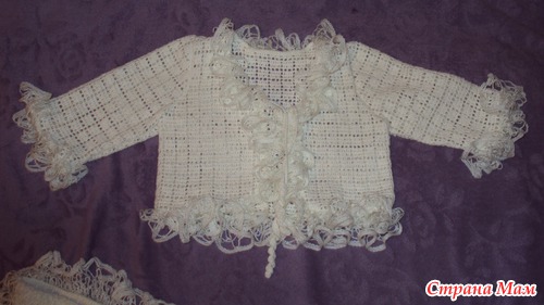 Болеро вязала в комплект к ранее связанной юбочке с оборками: https://www.stranamam.ru/post/5927882/