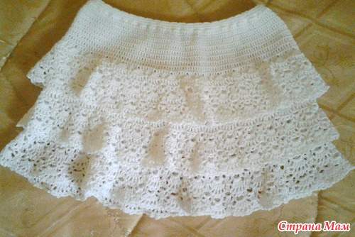 А, ну и юбочку покажу. Это связано для старшей племяшки, Ниточки тоже Пеликан, легкая, ажурная.