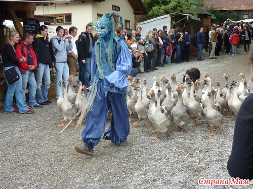 а вот этот... у него стая гусей и собака... она как раз на заднем плане... он свистнет что то в свисток - и собака начинает собирать гусей в кучу, разбивать их на части, выделять отдельного гуся... - очень интересно...