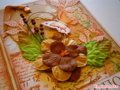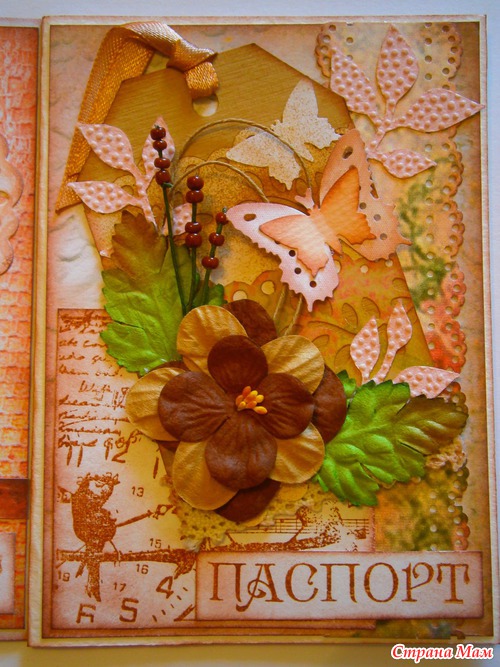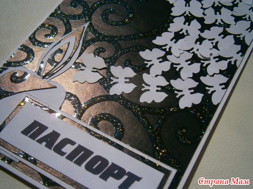 Ну и еще одна обложка. Тоже сделалась по заданию одного блога. Нужно было сделать любую работу, в которой использовалось бы большое количество какого-то одного мелкого материала - пуговки, листочки, бусинки и прочее. У меня это бабочки)