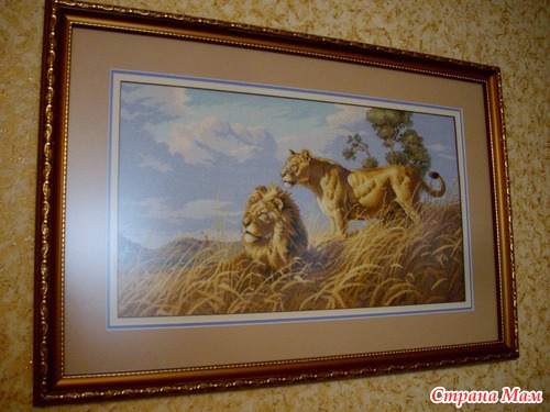 Эти картины вышиты давно, но никак не получалось их оформить. И вот свершилось! Я оформила свой "Водопад" от Золотого Руна и " Африканских львов" от Дименшинс. Вот теперь любуюсь
