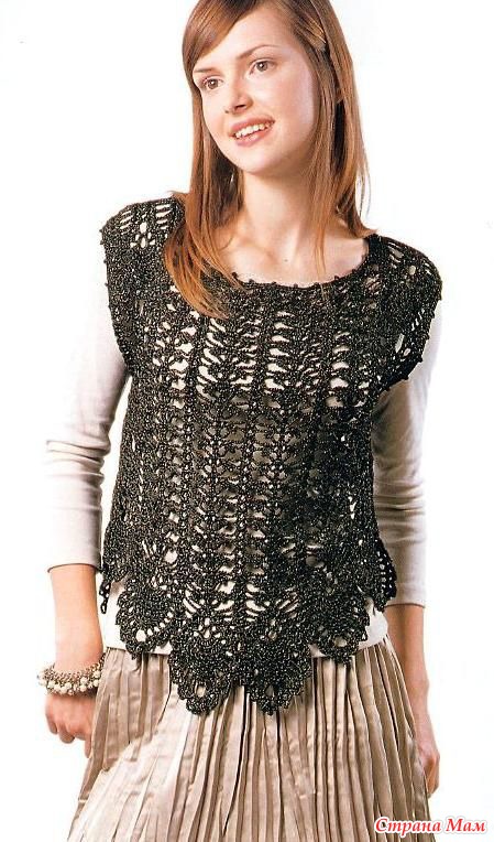 Я как раз заканчиваю свой "шедевр" . Подыскиваю, что следующее начать вязать. А тут Вы... Красота какая. Спасибо большое этой безрукавкой и займусь потом (очень понравилась) . Только никак не пойму, что за значек на схеме ( по-моему, петелька какая-то. Может, это пико так обозначено?). Подскажите, пожалуйста, если можете