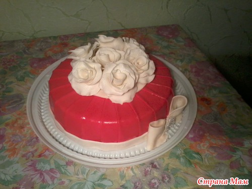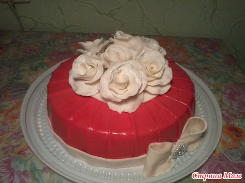 работа сделана и оказывается, что на праздник т. Зина одела белую юбку и коралловую блузку, а я ей подарила коралловый торт с белыми розами (ну чем не экстрассенс))) (цвет на фото немного искажен)