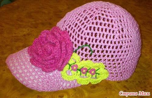 Такой шапочки на лето у нас еще не было, дочке очень понравилась. Может быть, кто-то еще захочет повторить, по ссылке очень доступное описание.