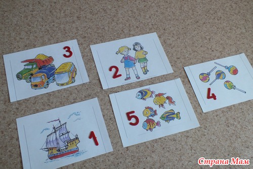 Андрюша хорошо считает и понимает количество до 5. А помогли нам в этом подобного рода задания.