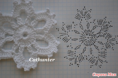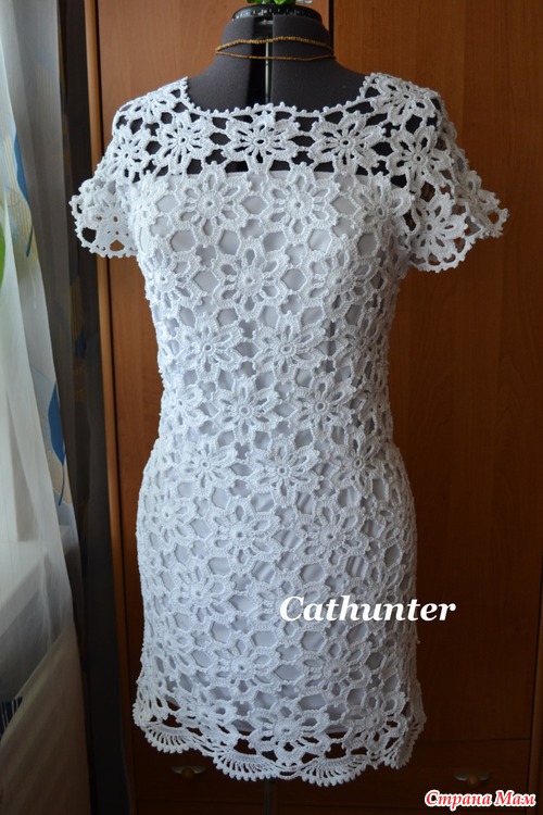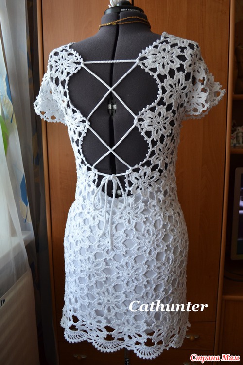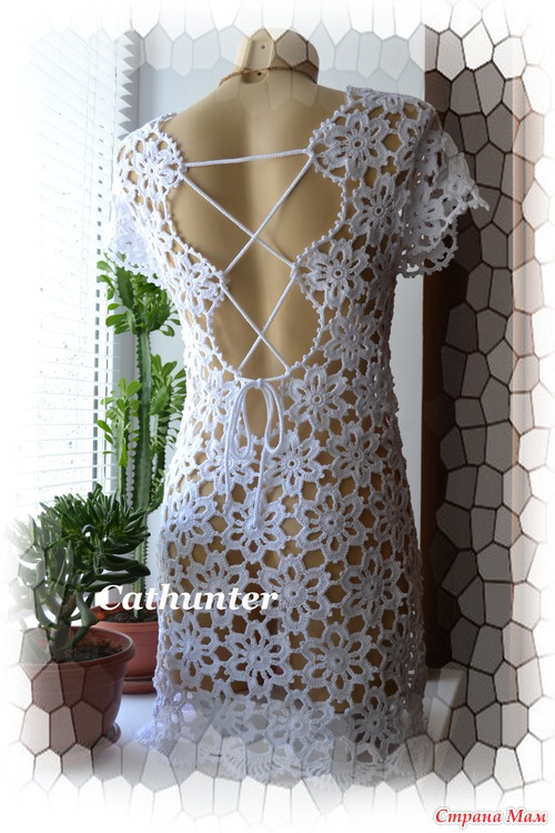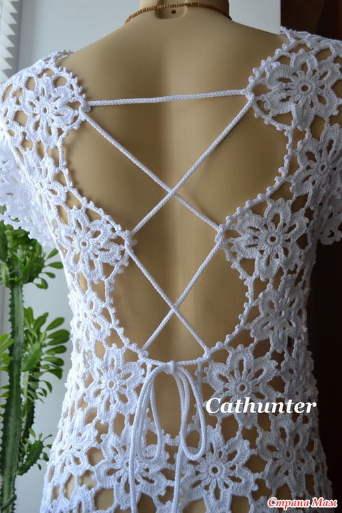 Для приталивания мотивы немного уменьшала в размере, для этого вместо 24 столбиков с накидом вязала 12 столбиков без накида)