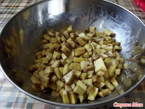 По истечении часа, баклажаны обжарить на подс. масле до светло - коричневого цвета