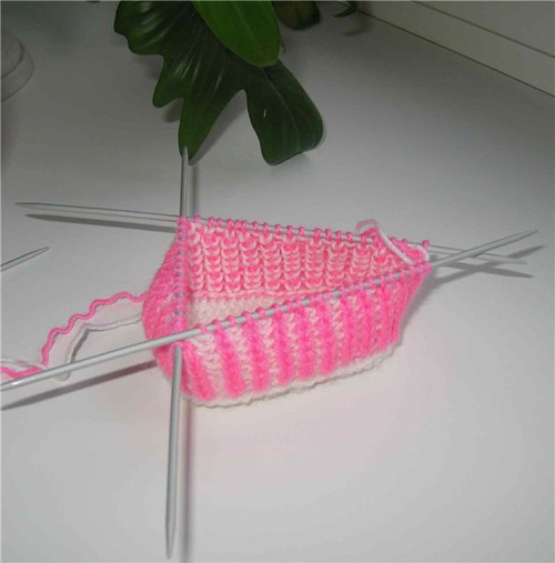 3ряд (розовая нить)- 1изн, 1 лиц (накид с петлей вместе) и т. д. по кругу