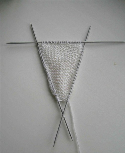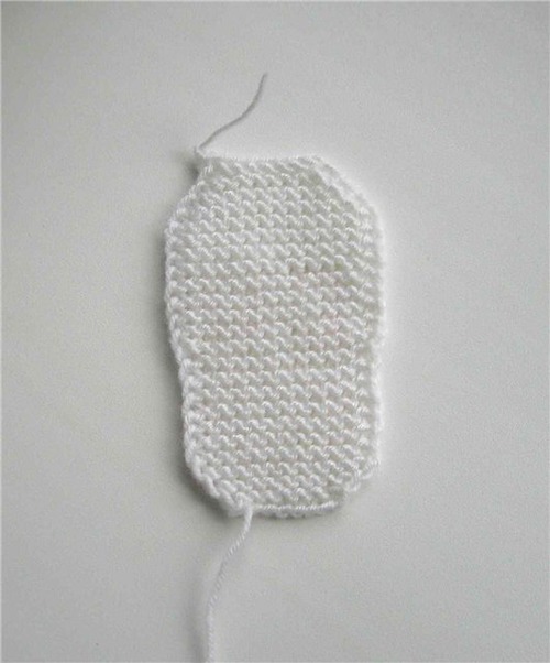 Дальше вязать платочной вязкой, не забывая сделать отверстие для пуговицы.