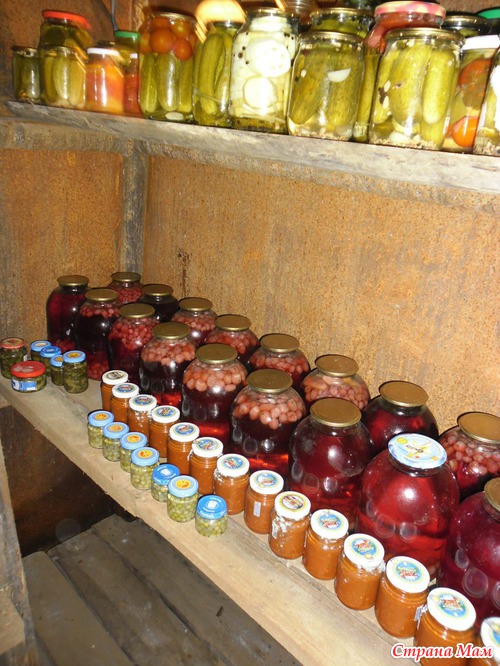 Для гостей званных и не званных на другом стеллаже стоят банки с тушёнкой и соленья - закусон. Тушёнка самодельная.