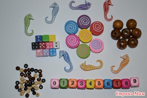 Деревянные бусинки некоторые не понравились (самые мелкие, у них брака много), пластмассовые игральные кубики тоже