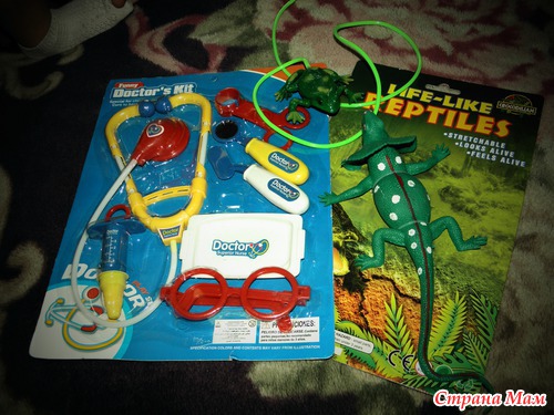 Набор доктора (я давно мечтала купить) и рептилия. Последняя из них - это то, что доча наша очень любит и просто без ума от них! Она даже спит с этими гадами! Да и цена очень порадовала - в два раза дешевле, чем у нас в городе! Жаль что я так мало их заказала )))