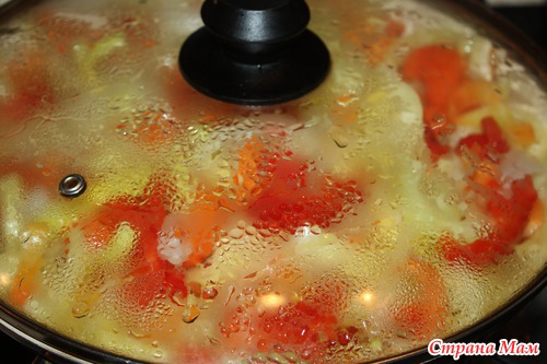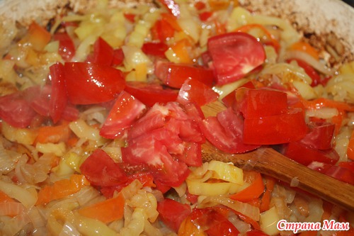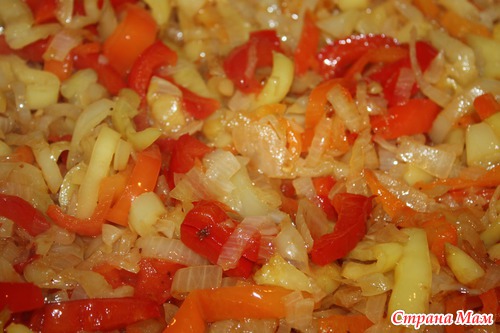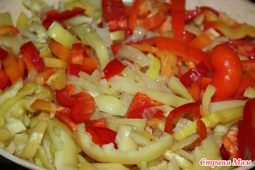 и добавляем к луку и перцу, тушим все вместе