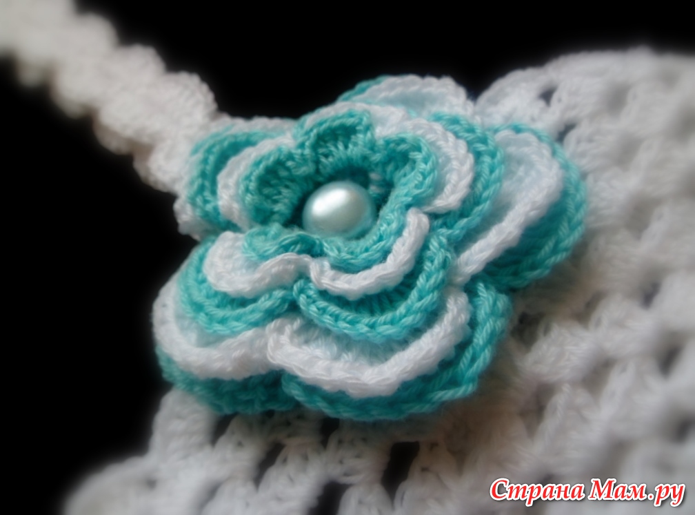Я использовала ниточки СОСО и крючок №2. На весь комплект ушло 3 моточка бирюзового и 1 белый.