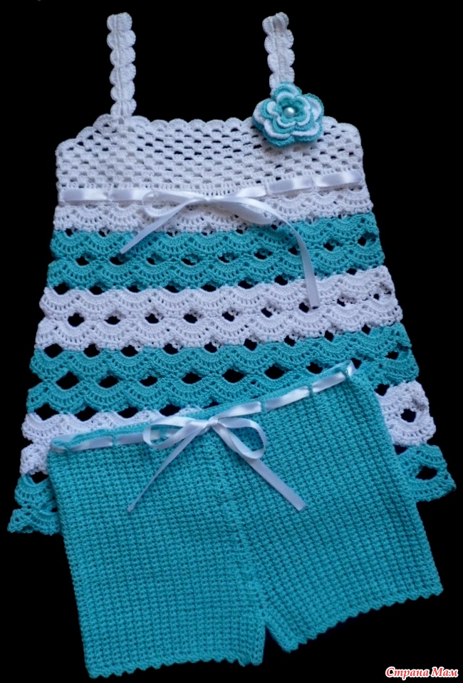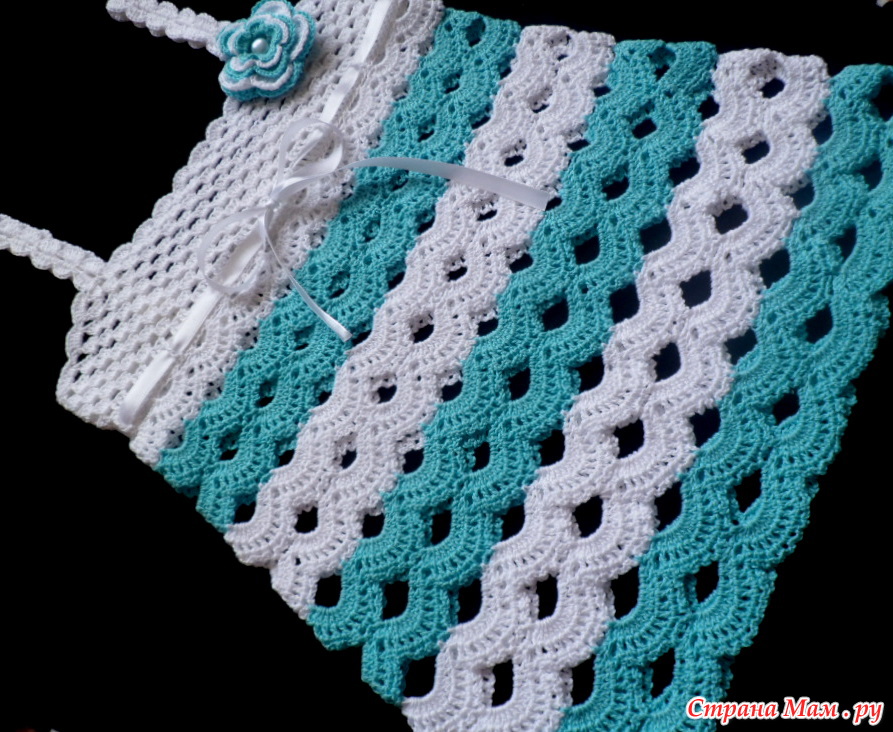 Туничку-сарафанчик вязали здесь в он-лайне: https://www.stranamam.ru/post/5743557/.